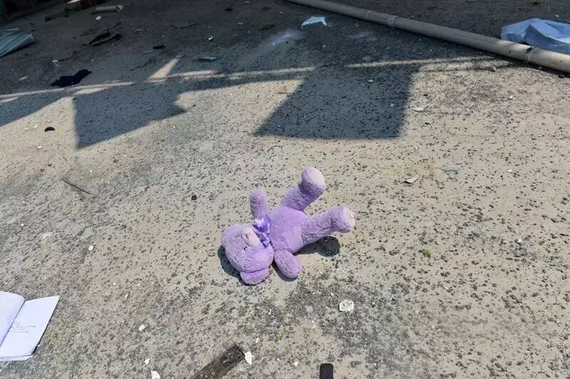 虽然现场很危险,但很多记者为了捕捉更多画面,在里头几乎呆了一天才出来,而且连口水都没得喝,这是北京一个记者在现场拍下的照片:一只被爆炸震出楼外的玩具熊。