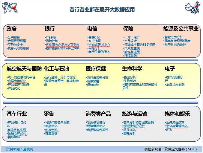 ◎目前,大数据已经在各行各业展开应用,成效显著。美国通用电气公司通过每秒分析上万个数据点,融合能量储存和先进的预测算法,开发新型风机,效率与电力输出分别比现行风机提高了25%和15%。UPS通过行车整合优化和导航系统(On-Road Integrated Optimization and Navigation,ORION),利用安装在上千辆运输车辆上的传感器不断发回的数据流来优化线路,UPS公司运输路线缩短了530万公里,引擎闲置时间减少了1000万分钟,节省了65万加仑的油,碳排放量减少了6500多公吨。