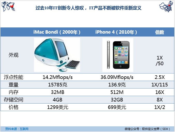 图3:2000年的iMac Bondi与2010年的iPhone4对比