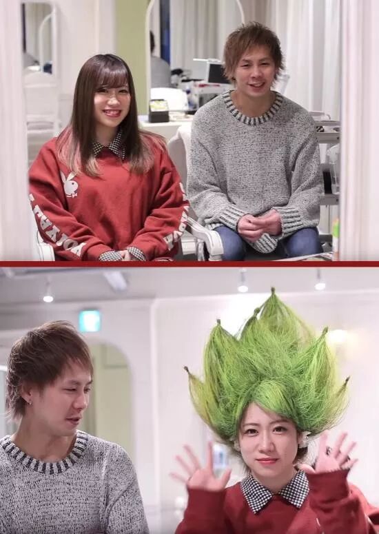 但自己脑袋上的头发就没那么多破事了,你有足够的理由说服自己在脑袋上下足了钱和功夫。比如同样是冲昏头脑想要模仿《龙珠》发型的人,粉丝们显然会比倒腾假发更用心了:
