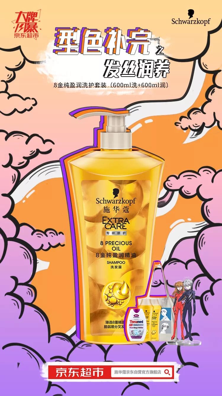 现在机会来了,百年护发品牌施华蔻x EVA合作炸裂登场!集洗护、染发、定型于一体的“型色补完计划”正式启动。至京东超市大牌风暴活动购买,就能获得EVA定制帆布包和人物立牌,还能get更多超赞好礼,任买2套还能解锁EVA机体限量版周边。