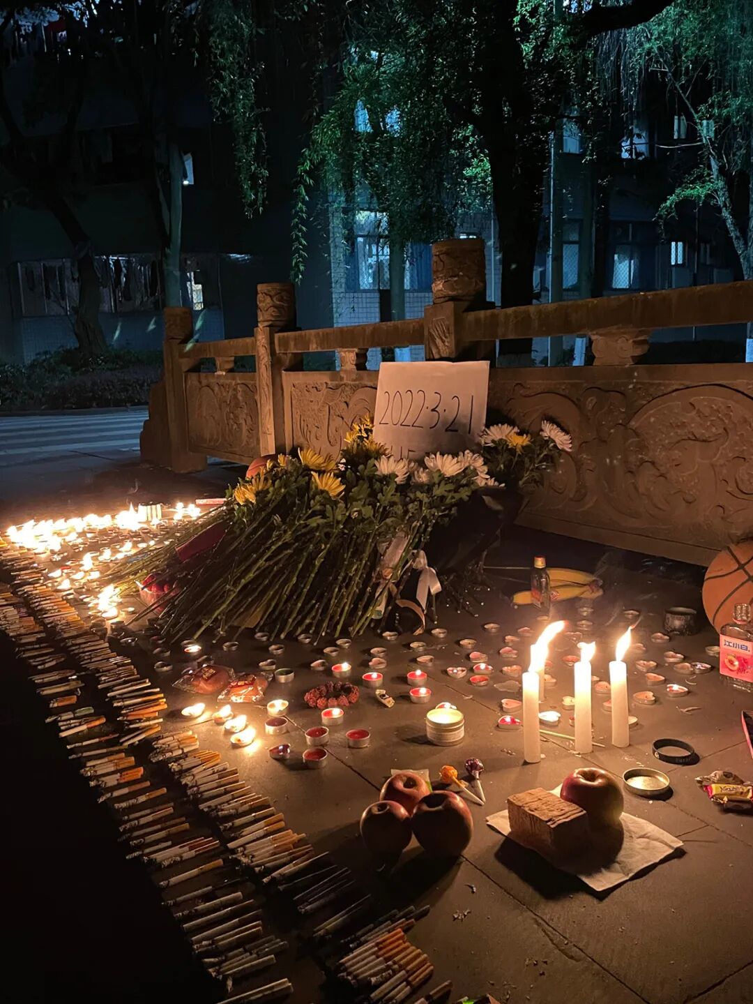 这所学校创建于1956年,被誉为“中国民航飞行员的摇篮”。那天黄昏,飞行器适航技术专业的学生李哲彧和朋友们把22盏烛台围成一个半圆。黄色烛光微微晃动,环抱着白色和黄色的菊花。中心区白色的方形纸板上,黑色的大字写着“2022.3.21 MU5735”。
