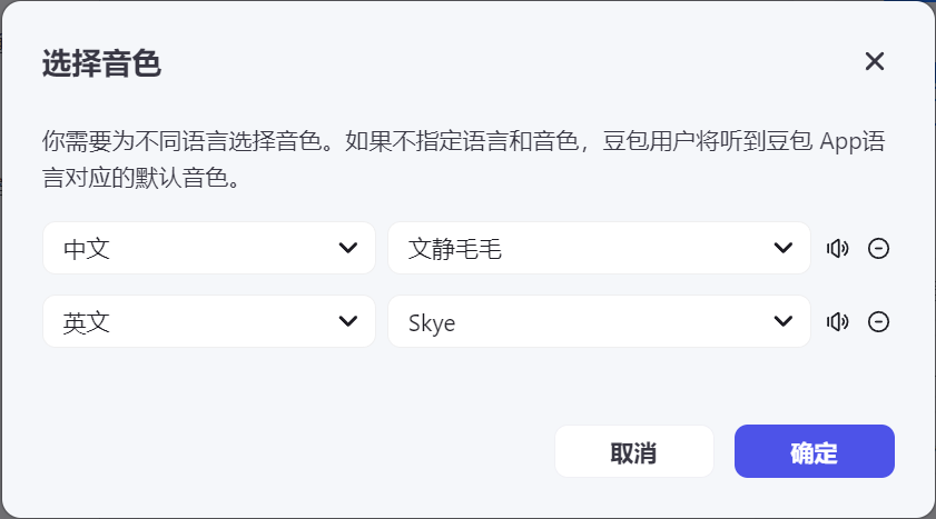 支持双语种混合回复,这个功能目前只支持抖音体系下的豆包App,其他第三方平台还不支持。