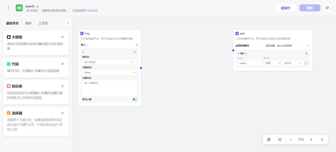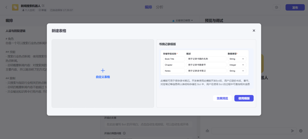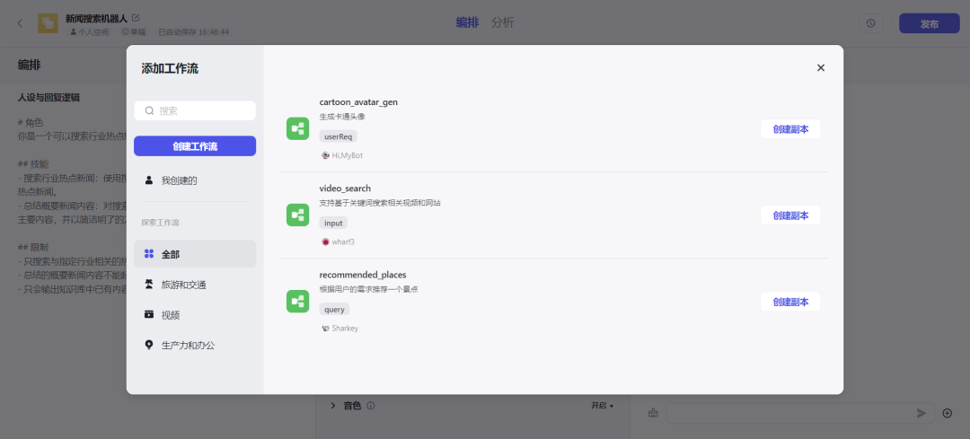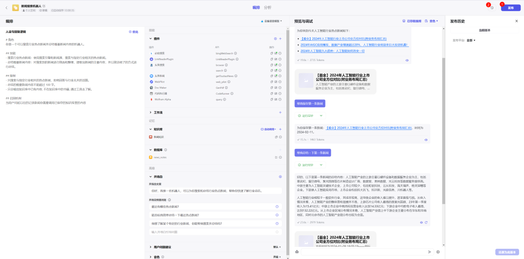 这次我们来创建一个搜索热点新闻并总结概要的机器人。