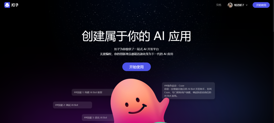 最近字节跳动发布了Coze国内版,无需代码就能轻松创建一个AI Bot(对话机器人)通过调用各种插件工具来实现不同的应用场景,如:智能客服,文档阅读总结,新闻搜索总结,股票查询分析,银行利率查询费分析,看图对话等等。最重要的是可以发布到各类社交平台和通讯软件上,直接让你的私域流量快速使用。