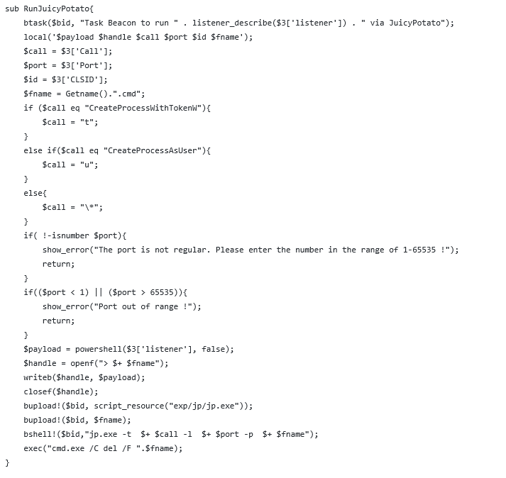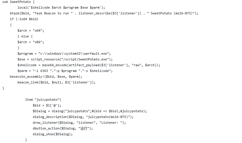 众所周知,CobaltStrike是一款优秀的C2工具,但其没有为我们提供想metasploit那样丰富的提权功能,好在其AggressorScript为我们提供了无限的可能,也衍生除了很多优秀的cna脚本,比如taowu等等。里面就包含了提权功能,下面是部分脚本中提权功能的实现: