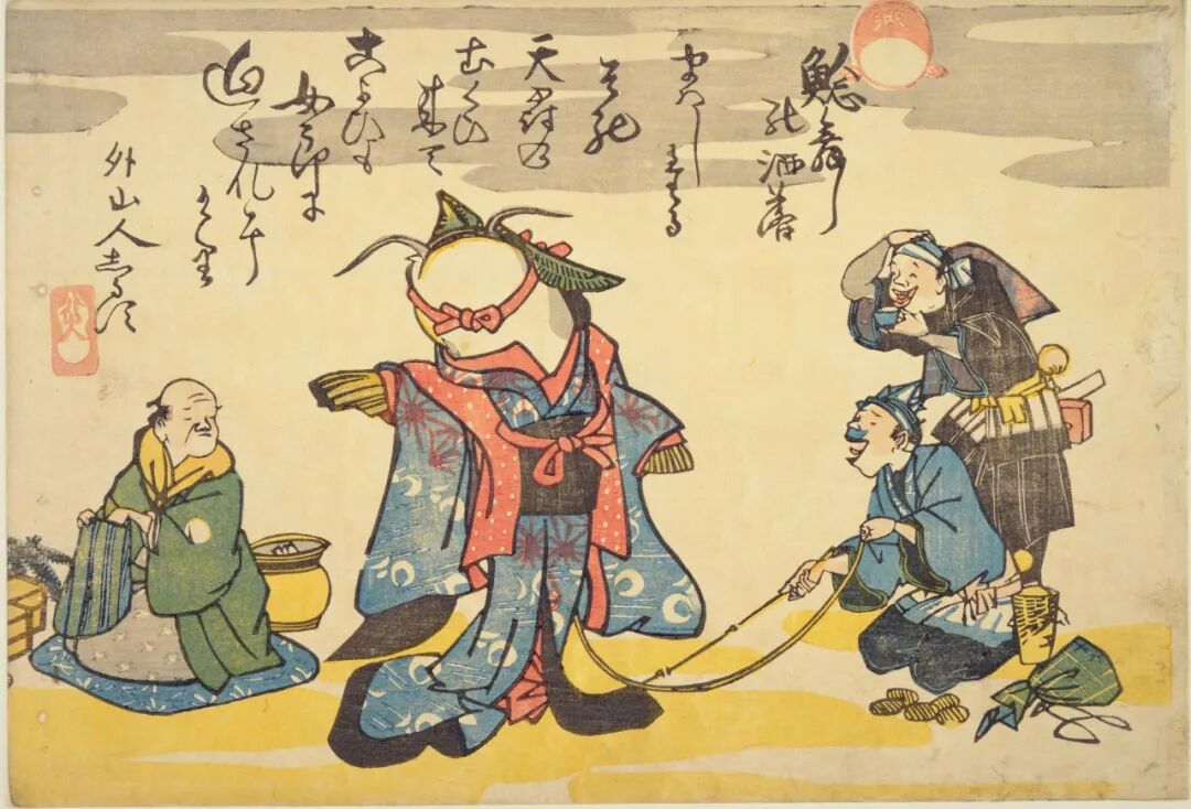 “大津絵”的代表题材之一:葫芦、猴子和鲶鱼。© wikipedia