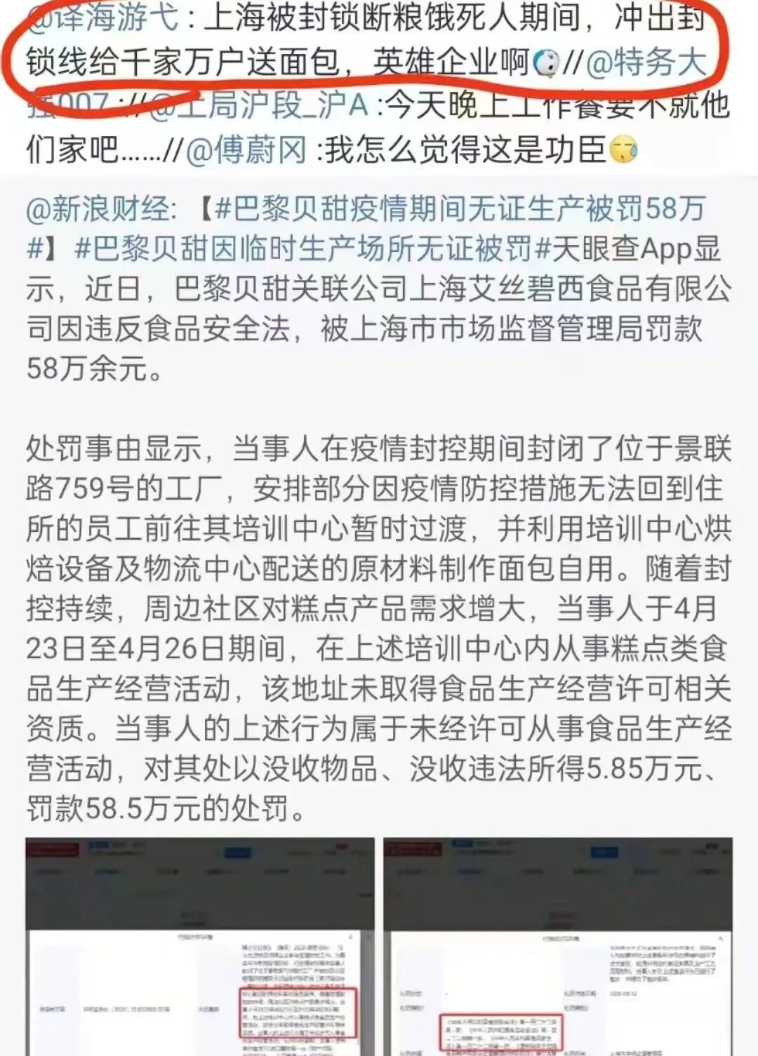 面包店最早的违法动机,就源自于看到太多人喊饿了,在上海静态期间,很多吃的喝的都在翻倍涨价的情况下啊,选择了平价卖货。