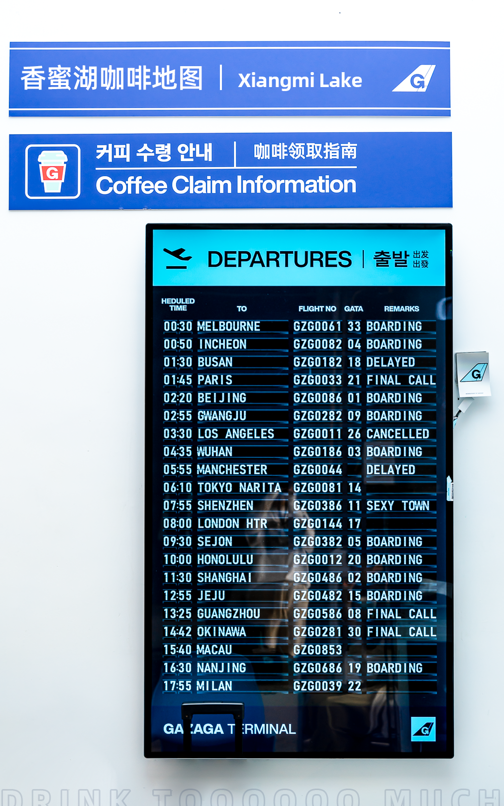 以机场为主题的咖啡店,主理人是韩国欧巴,热爱旅游。店名“gazaga”韩文发音是“拿走”的意思。候机厅、点单附带的护照机票、航班列表等等,仿佛下一秒就要飞往旅行的目的地。