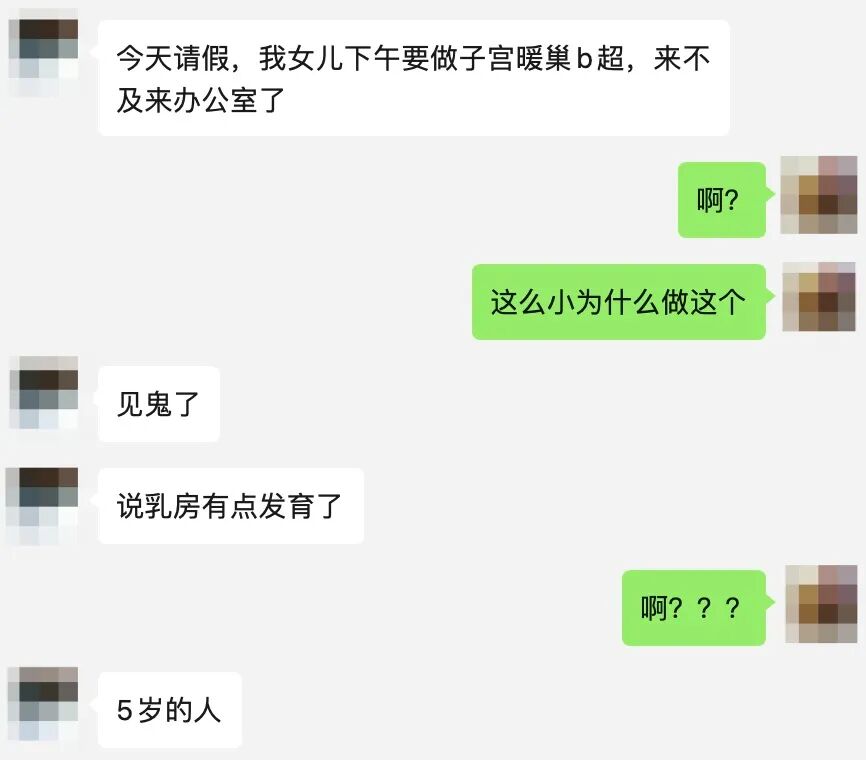同事女儿才5岁,就发现胸部发育了。在医生的建议下做了胸部和子宫卵巢B超,结果提示乳腺发育,卵巢和子宫也有发育征兆。