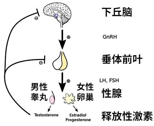 这种药物治疗叫做促性腺激素释放素模拟疗法。通过注射药物,占据脑下垂体的促性腺激素受体,这样脑下垂体就没法继续分泌、释放可以刺激卵巢或睾丸产生性激素的促性腺激素,最终使得血液中的性激素水平下降。