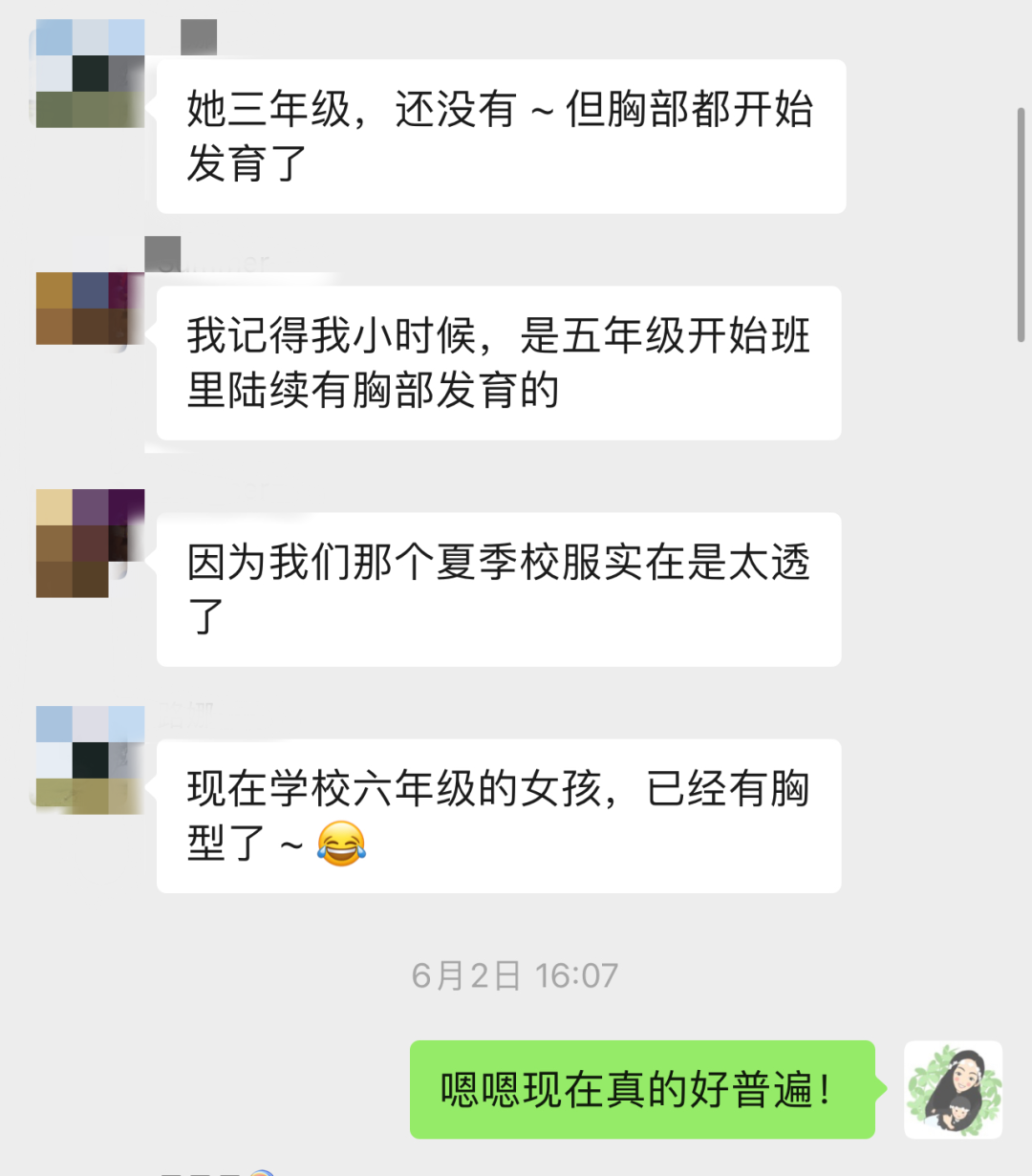 而另一位同事的女儿因为身高长得太快,也是被周围人提醒去医院检查是不是提前进入青春期了。三年级的女孩,的确胸部已经开始发育,同事很担心孩子哪一天月经就来了。
