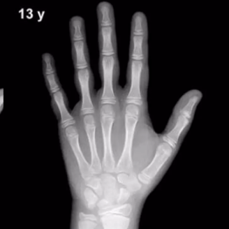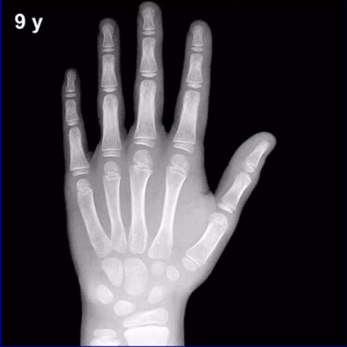对孩子的手和手腕部X线检查,确定骨龄,判断骨骼是否生长过快。