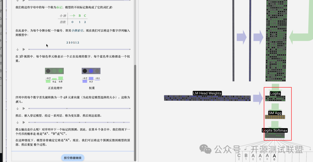 在这种情况下,模型非常确定它将是“A”。现在,我们可以将这个预测反馈到模型的顶部,然后重复 整个过程。