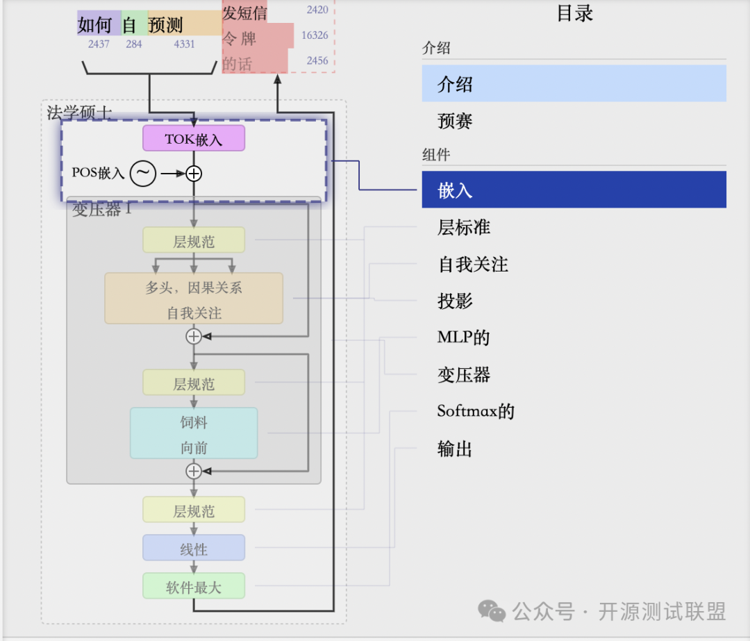 然后,嵌入穿过模型,经过一系列层,称为变压器,然后到达底部。