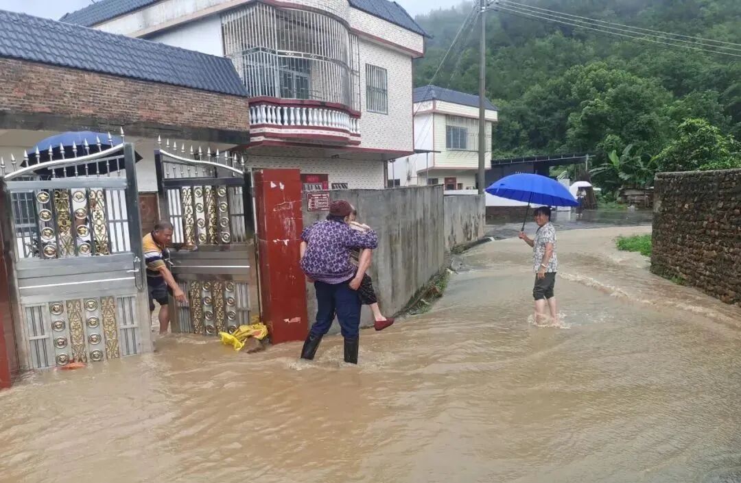 始兴县综合应急救援队伍转移隘子镇危险区域群众。