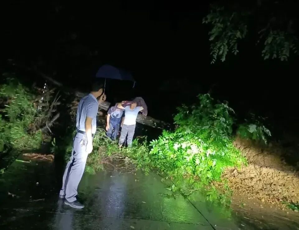 翁源县领导干部到李洞村指导防汛工作并清理道路。杨雪丽 摄