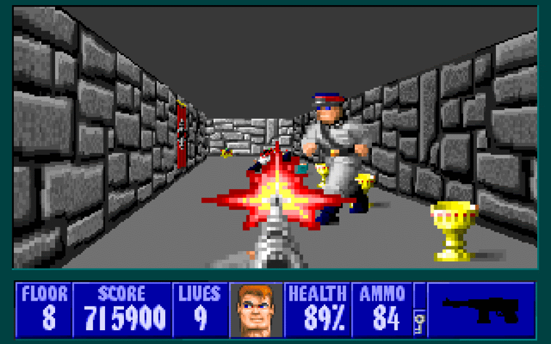 而《德军总部》和《毁灭战士》也可以说是FPS(第一人称射击)游戏的鼻祖,直到今天还是一线IP,也是我的童年阴影之一(没有游戏评级的坏处)。
