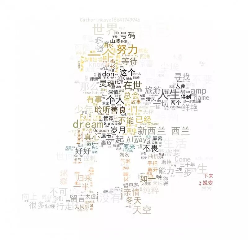 好玩的来了。之前已经爬下了每个好友的个性签名,刚好可以分析一下大伙儿个性签名时使用的高频词语是什么,顺便可以做个词云图。