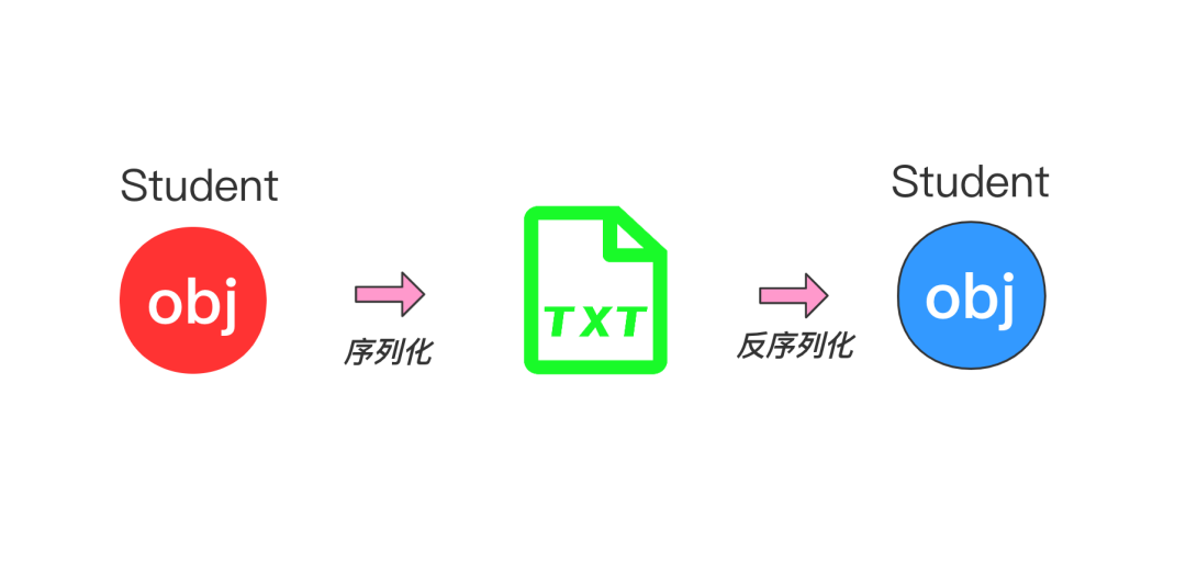 举个例子,假如我们要对Student类对象序列化到一个名为student.txt的文本文件中,然后再通过文本文件反序列化成Student类对象: