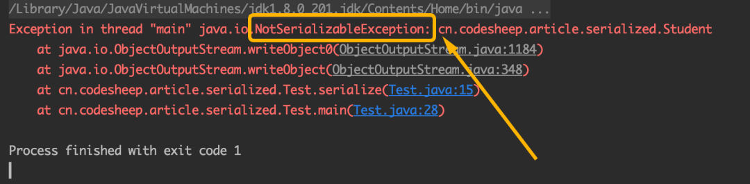 试想,如果上面在定义Student类时忘了加implements Serializable时会发生什么呢?