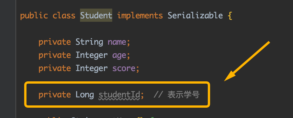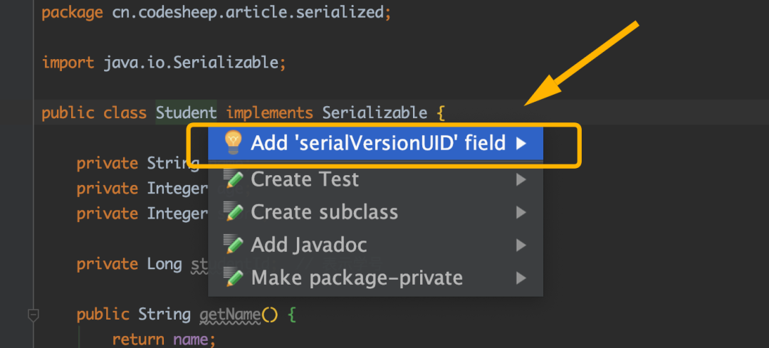 继续来做一个简单实验,还拿上面的Student类为例,我们并没有人为在里面显式地声明一个serialVersionUID字段。