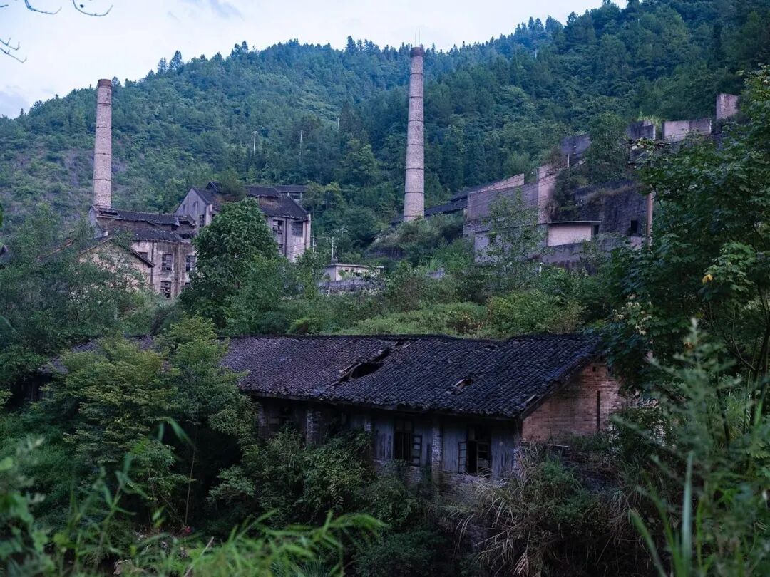 汞矿老厂部办公楼、电影院、供销社……嵌在大山深处,大约铺开了180平方公里。杨世贵走累了会在台阶上坐一会儿,周边的老房子掩盖在杂草灌木里,有时冒出几声虫叫。