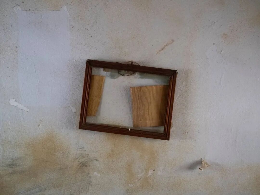 ●在汞矿住宅楼的墙上挂着没有照片的相框。