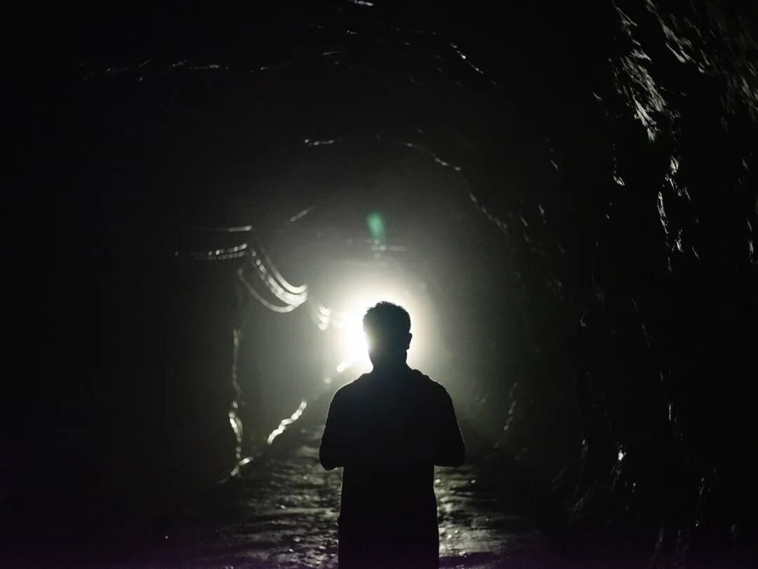 ●汞矿隧道中没有灯光,层层岩壁上依然留着工人在此工作的痕迹。