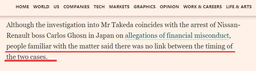 不过,也有来自日本司法部的官员对《每日新闻》否认了两个案子的关联,称这俩案子只是时间上巧合而已。一些西方媒体也引用“消息人士”的说法称两个案子除了时间上有些撞车外并无任何关联。