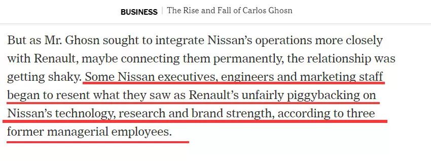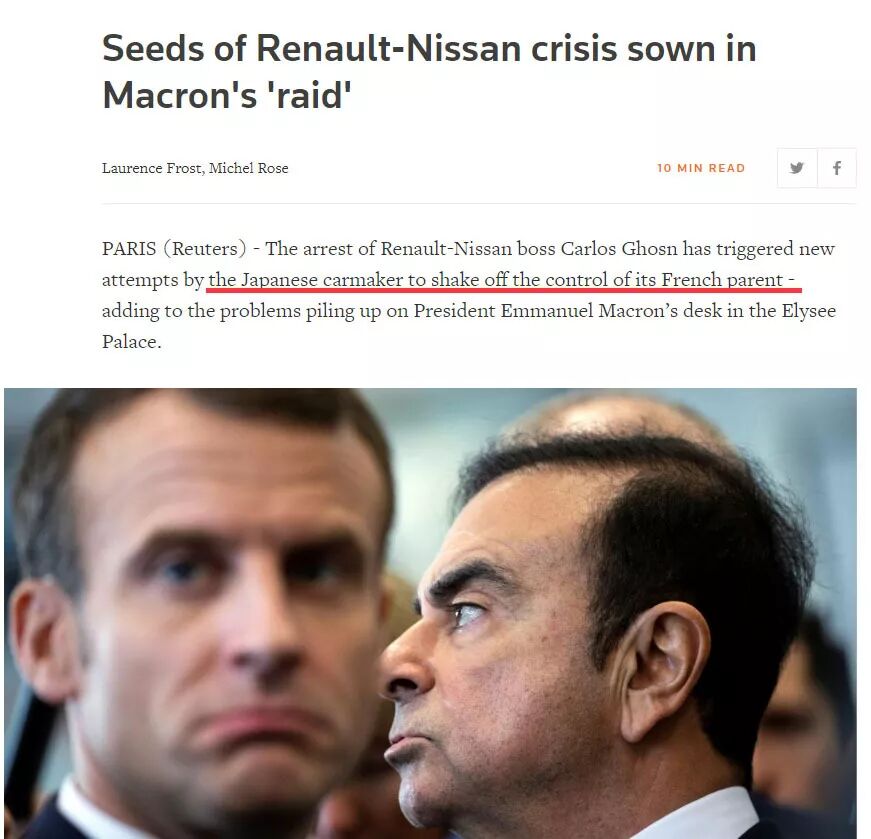 不仅如此,当时路透社的报道还怀疑日本逮捕戈恩是想让日产摆脱法国人的控制。《纽约时报》的报道也透露说,虽然戈恩曾经将濒临破产的日产汽车挽救回来,日本人后来却逐渐发现戈恩想占日产的便宜,把日产的技术和研发直接拿给雷诺去用,因此对他心存不满。