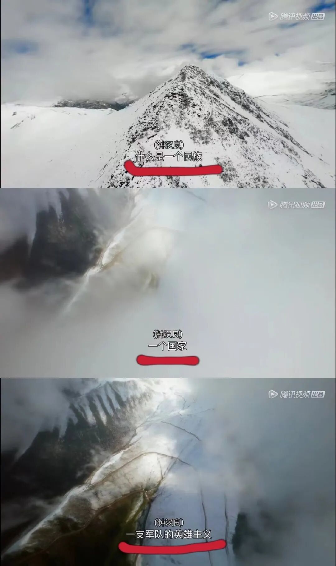 (2)钟汉良的旁白表达的是一个来自中国的自述者,讲述他知道的红军翻越夹金山的历史细节,以及亲历雪山之后的哽咽:“我要将我全部的敬仰、我的致敬,献给每一位红军战士。”