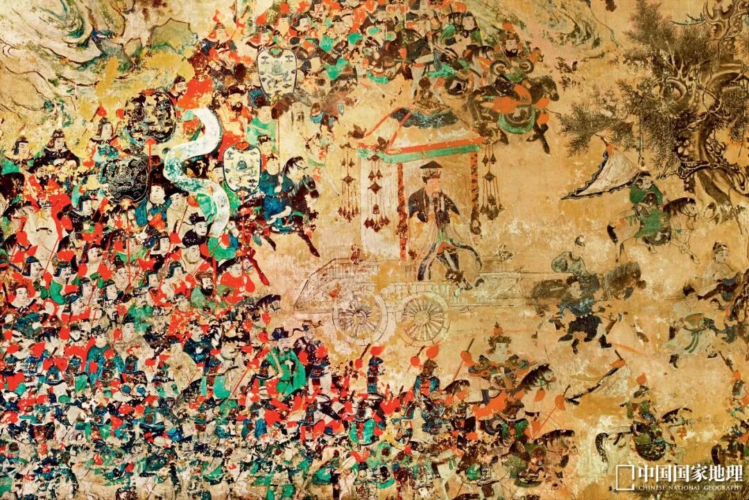 绘满岱庙天贶殿的三面墙壁,但见泰山神以天子仪卫出巡、回銮,前拥后簇,壮观不已,恰如宋真宗,大举封禅泰山的盛况。