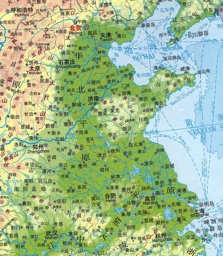 将目光投向太行山脉与华北平原一带,泰山更是“泯然众山矣”,太行山脉主峰高达2882米,海拔在两千米以上高峰更是多不胜数。