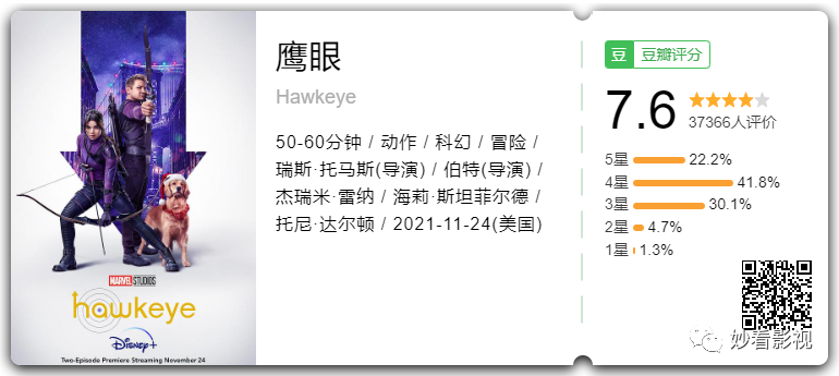 根据漫威漫画超级英雄鹰眼改编的剧集,围绕着年轻复仇者凯特·M·毕晓普的冒险故事,她在初代复仇者克林特·巴顿之后接替了这个身份。