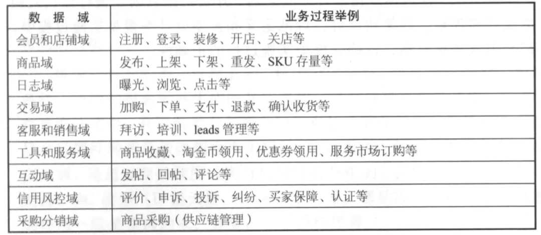 数据域是将业务过程或者维度进行抽象的集合,一般数据域和应用系统(功能模块)有联系,可以考虑将同一个功能模块系统的业务过程划分到一个数据域: