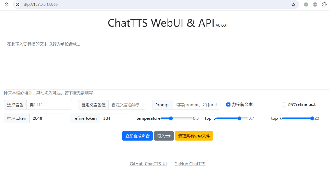 GitHub 地址→github.com/jianchang512/ChatTTS-ui