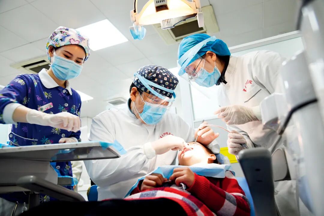 2021年3月3日,陕西西安市,在空军军医大学口腔医院,口腔预防科医生为儿童患者进行口腔诊疗。图/新华