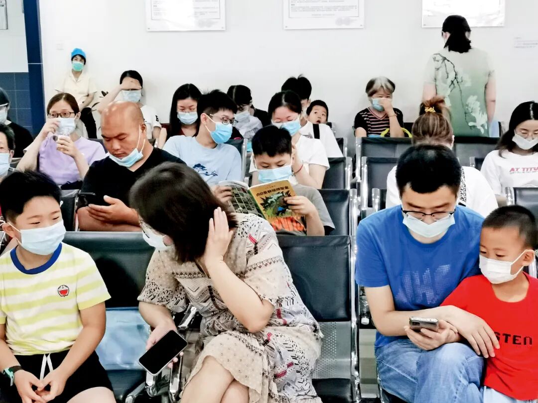 2021年7月21日,江苏苏州市华夏口腔医院里,不少家长带着孩子等待就诊。图/IC