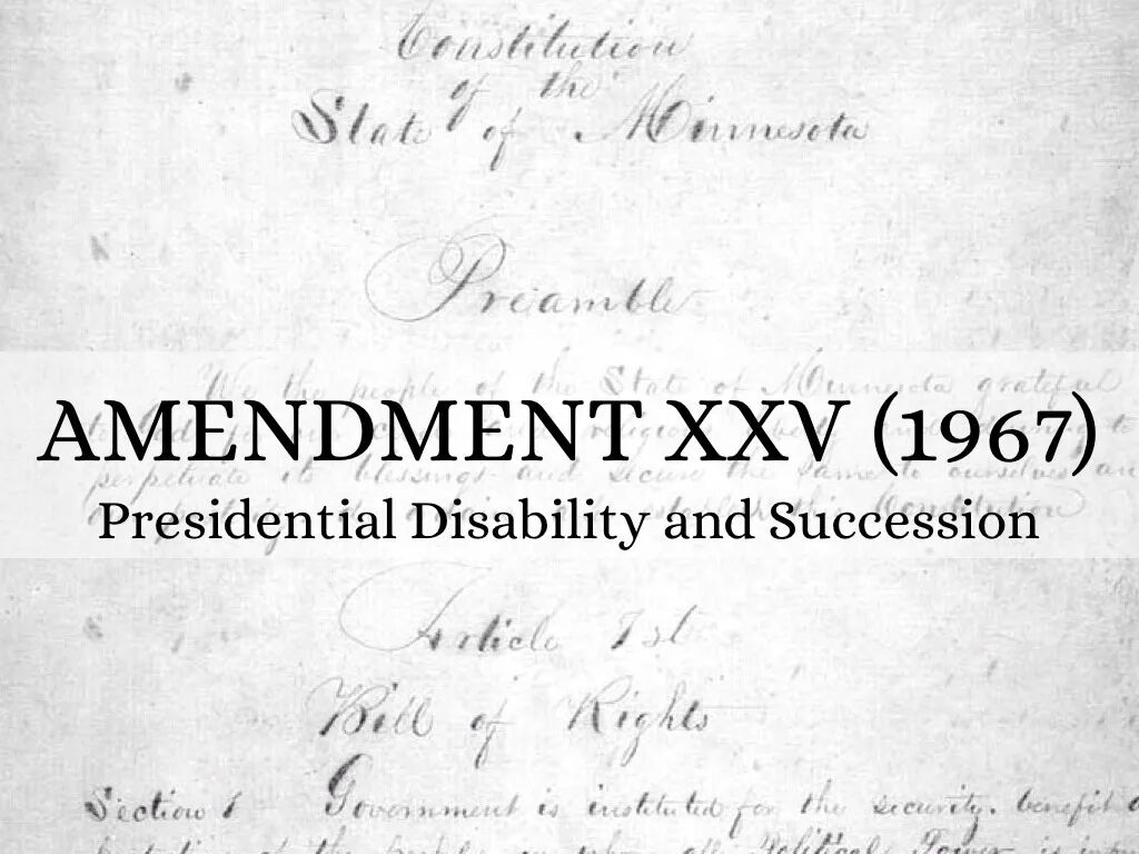 美国宪法第25修正案是在肯尼迪遇刺后的1967年由国会通过的,修正案规定,当总统死亡,辞职或者无法行使职权时,副总统和内阁多数成员(或者副总统和国会指定的机构)达成一致判断总统不适合行使职权时,可以激活修正案条款,由副总统代行总统职权。但历史上该条款从未激活过。