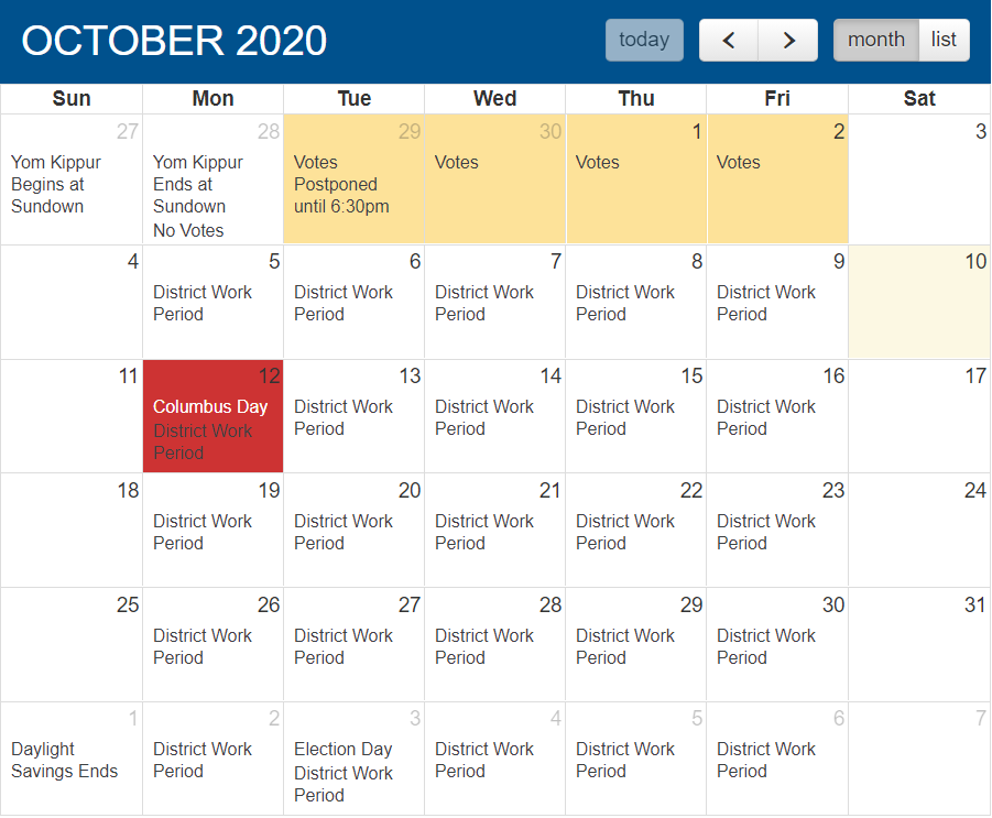 众议院10月份的日程表,10月2日以后议员们都在各自选区服务