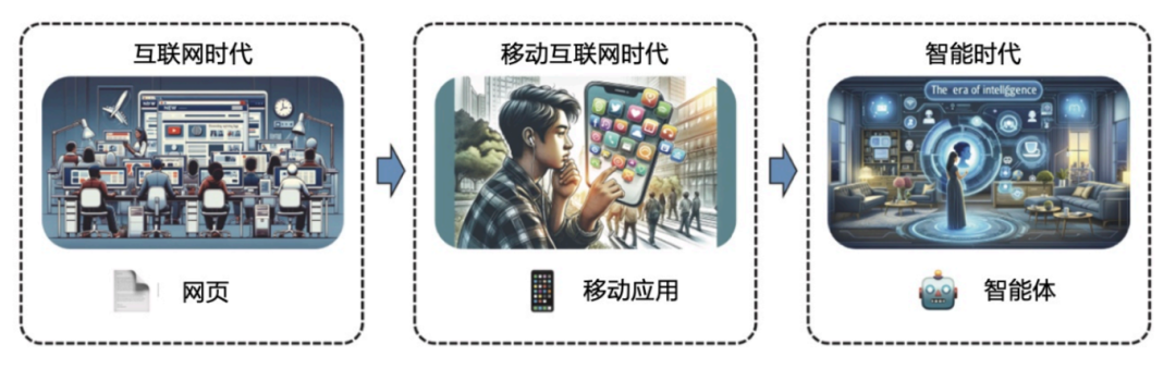 未来,大语言模型很有可能以这种全新形态融入人类的日常生活和工作中。人类将从移动互联网时代迈入智能时代,应用的载体也将由应用程序逐渐转变为基于大语言模型的智能体。