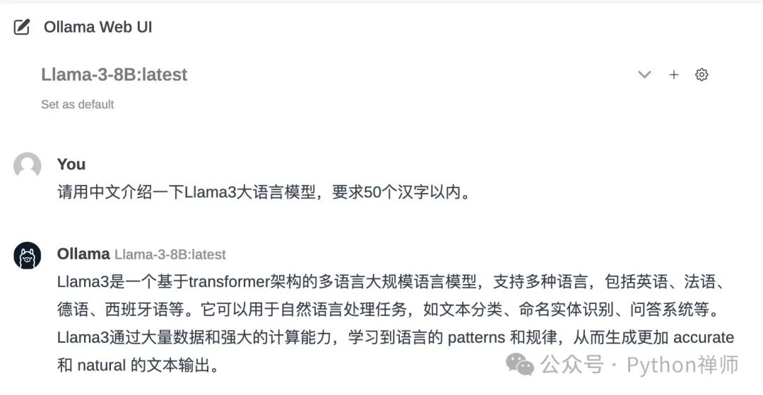 Llama 3大模型俩天对话浏览器打开 Web 可视化界面:http://localhost:3000/