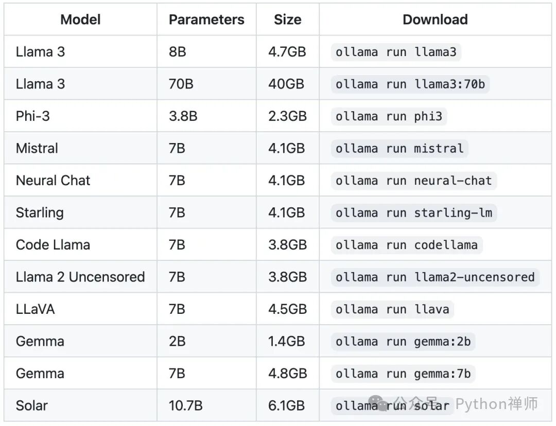Ollama目前支持以下大语言模型:https://ollama.com/library