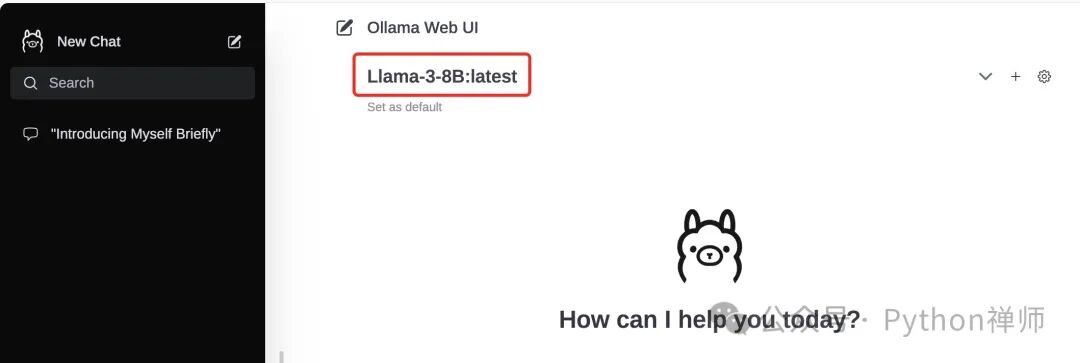 可以看到Ollama的初始化页面,默认没有模型,需要选择,我们选择刚创建并部署的Llama-3-8B模型: