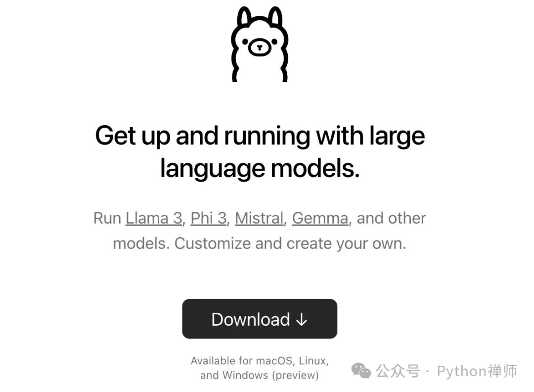 Ollama大语言模型工具Ollama提供了MacOS、Linux和Windows操作系统的安装包,大家可根据自己的操作系统,下载安装即可: