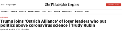 特朗普已加入失败者领袖的“鸵鸟联盟”