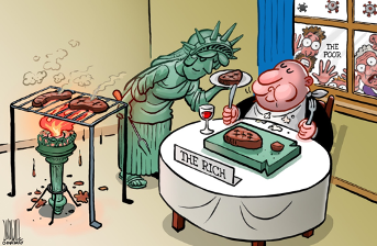 它故意牺牲了老年人、工人、黑人和拉美裔美国人,他们的死亡率更高。在此之前,美国国会通过了经济刺激计划,这对大型企业和亿万富翁来说是喜从天降,但对全美将近五分之一吃不饱饭的美国儿童——这一比例是大萧条时期的三倍——来说,一切并没有区别。