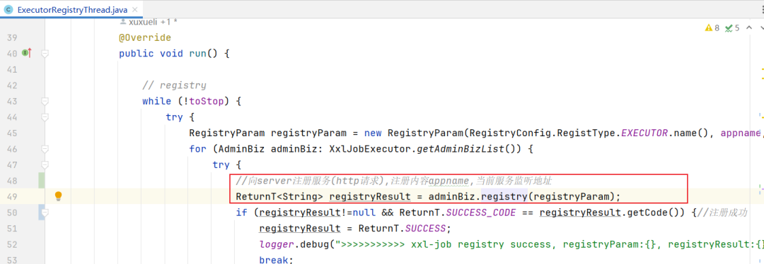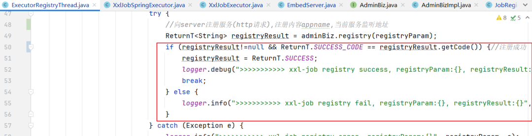 for (AdminBiz adminBiz: XxlJobExecutor.getAdminBizList()) {