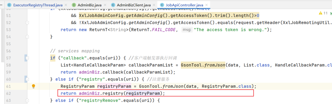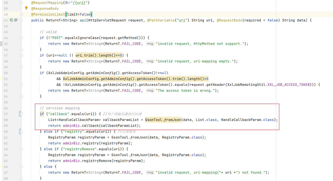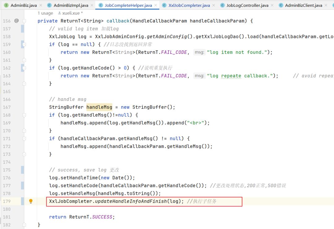 ReturnT<String> callbackResult = adminBiz.callback(callbackParamList);